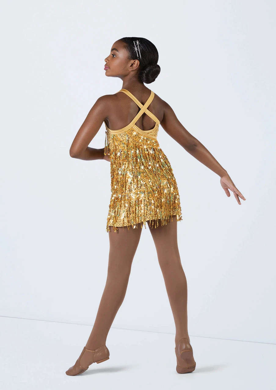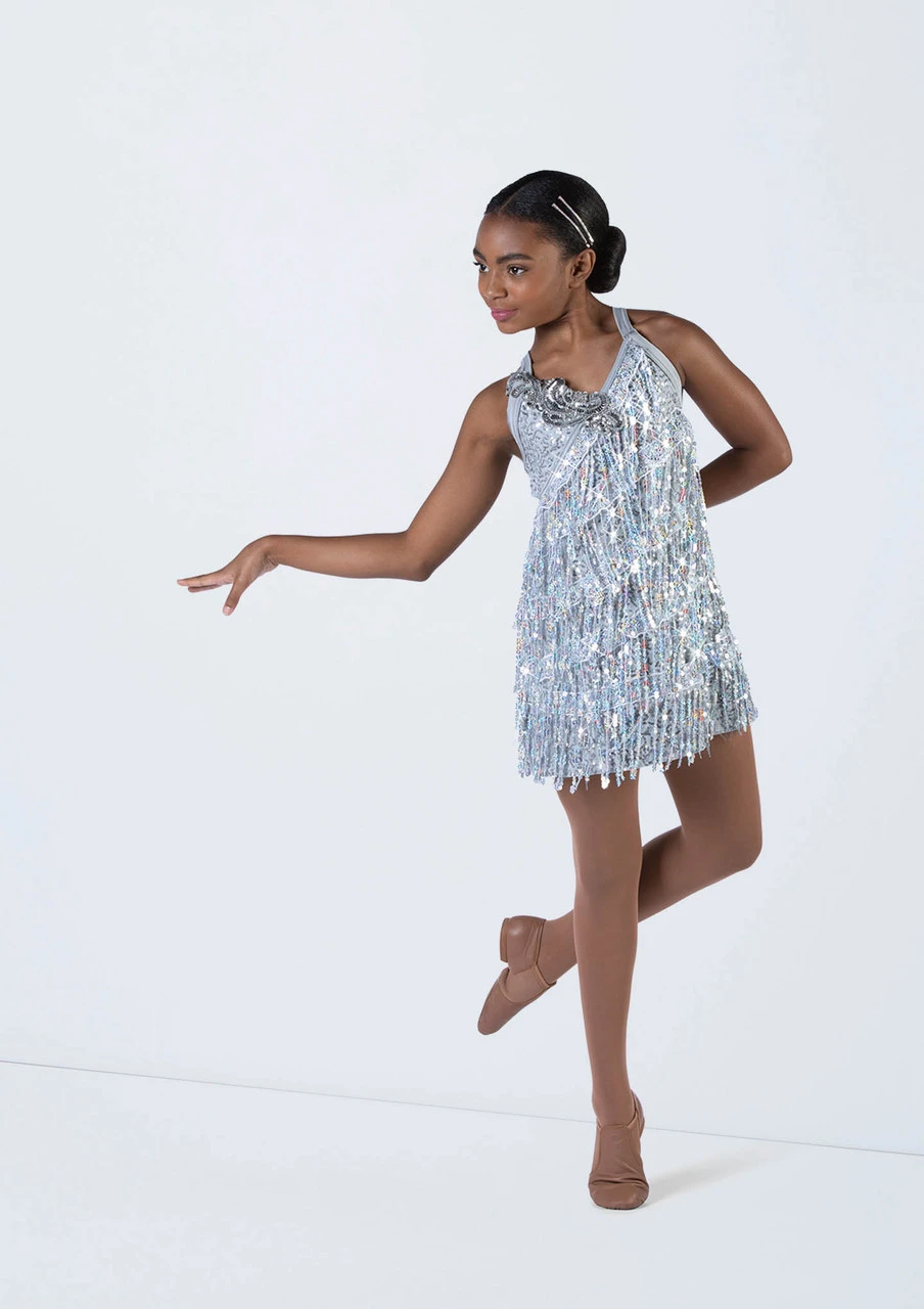 -Asymmetric tiers of sequin fringe