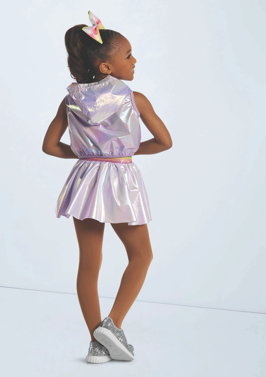 Pearlescent windbreaker skirt has rainbow elastic waistband