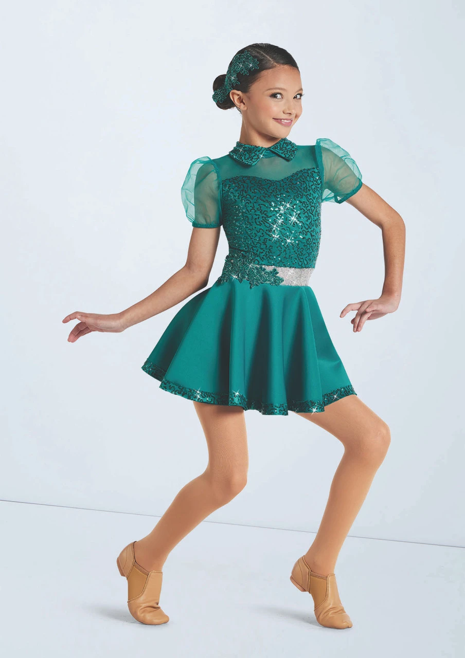 Dress has a sequin spandex bodice and collar